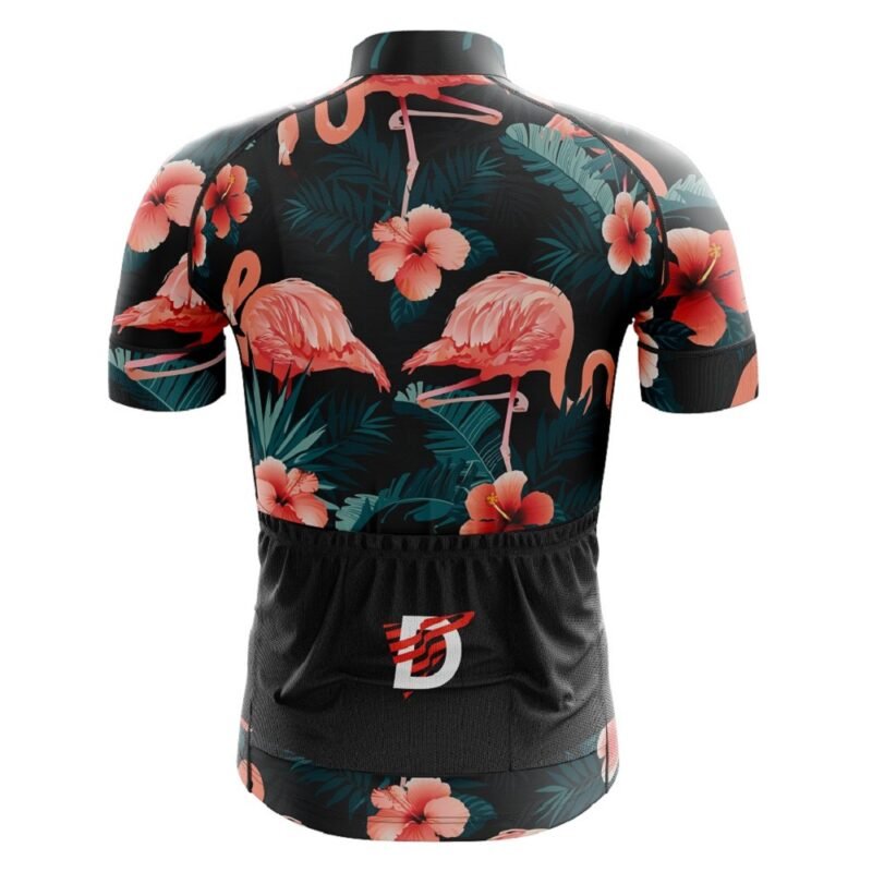 Camisa Floral Flamingo Ciclismo Preta Bike Dry Fit Curta Mtb