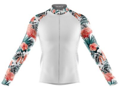 Camisa Ciclismo Floral Flamingo Longa Full Ziper Branca Mtb