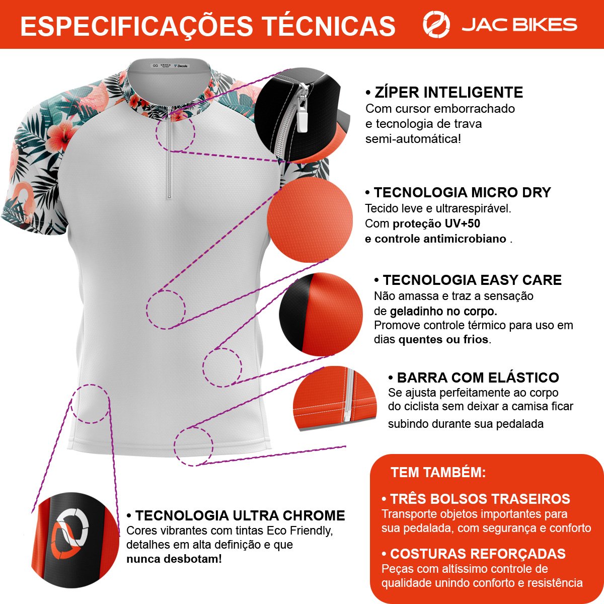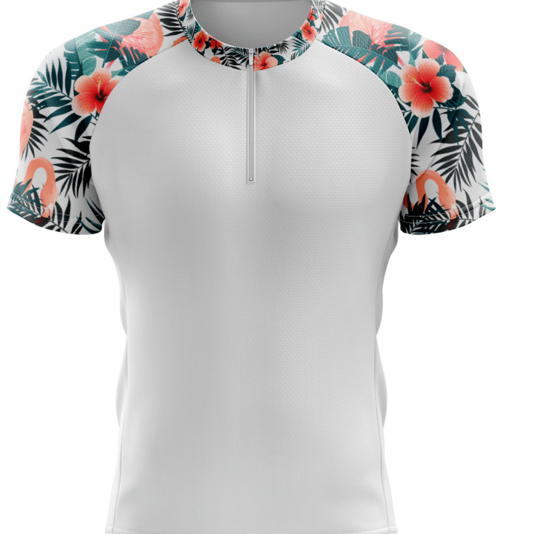 Camisa Ciclismo Floral Flamingo Curta Branca Bike Mtb