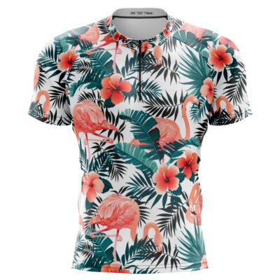 Camisa Ciclismo Floral Flamingo Dry Fit Manga Curta Bike Mtb