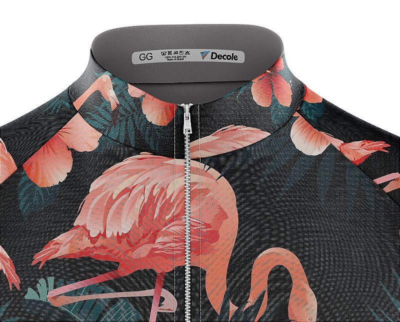 Camisa Ciclismo Floral Flamingo Preta Longa Full Ziper Bike
