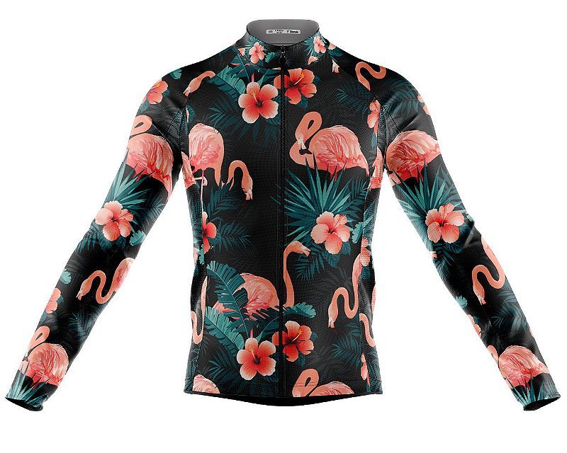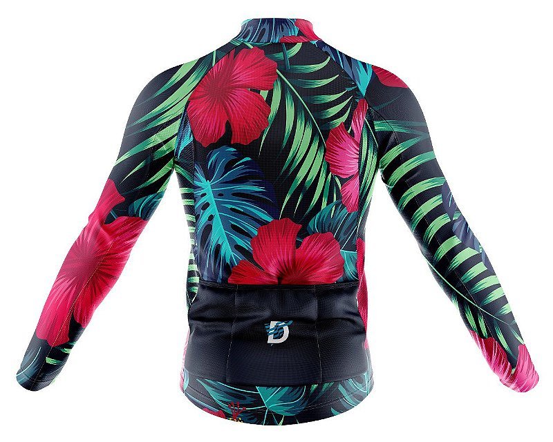 Camisa Ciclismo Floral Tropical Longa Full Ziper Bike Mtb