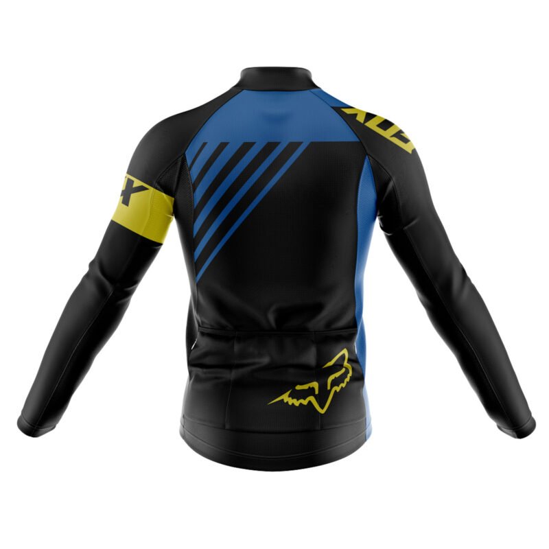 Camisa Ciclismo Fox Azul Manga Longa Zíper Full Fitness Proteção UV