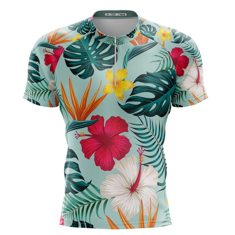 Camisa Ciclismo Folhas Tropicais Curta Dry Fit Bike Mtb