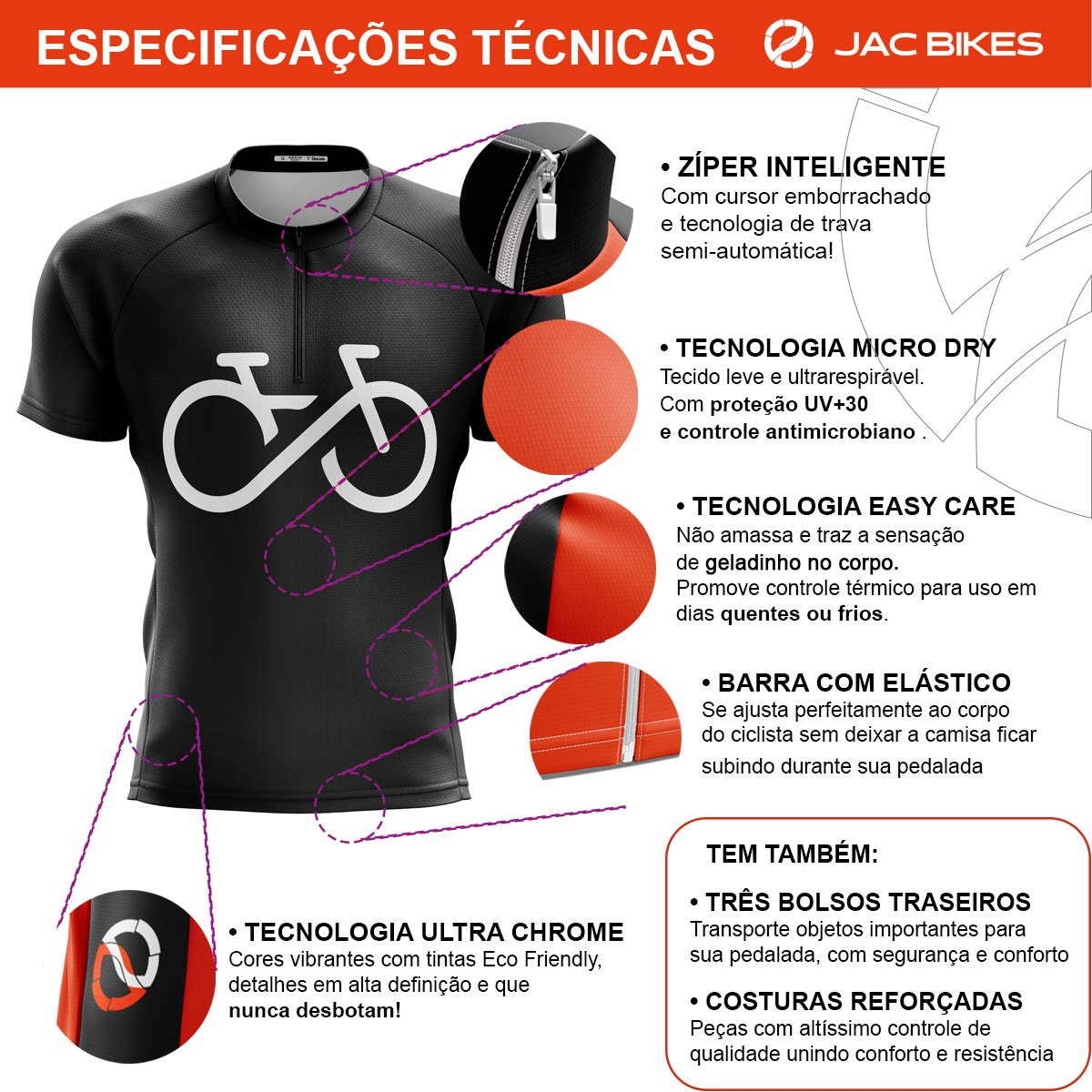 Este conjunto é a combinação ideal de desempenho, conforto e estilo para ciclistas exigentes. A Camisa de Ciclismo Dryfit possui tecido que controla a umidade, mantém o corpo seco e oferece proteção UV30+. Ela é leve, antibacteriana e tem três bolsos traseiros para maior praticidade.