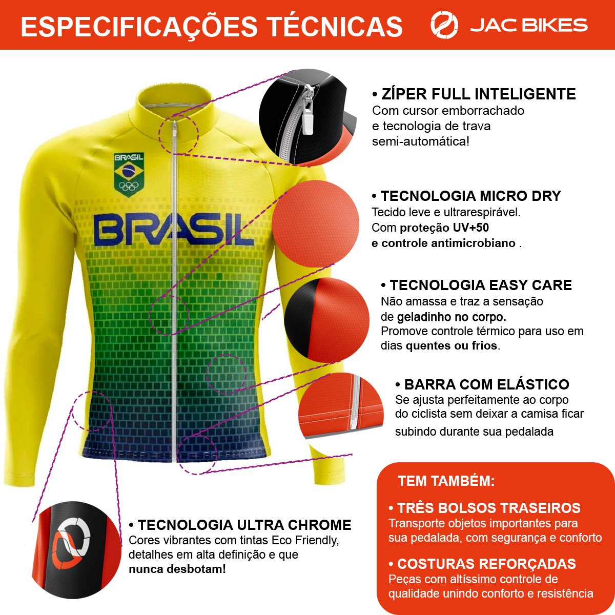 Conjunto Camisa Manga Longa Brasil Com Calça Ciclismo Espuma Refletivo