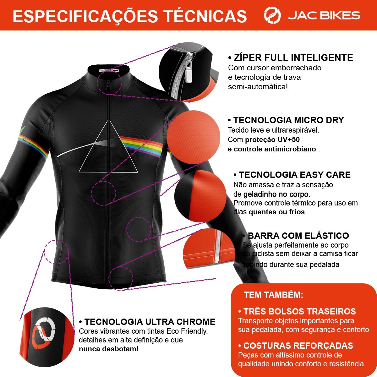Kit Bretelle Camisa Pink Floyd Manga Longa Dryfit Ciclismo