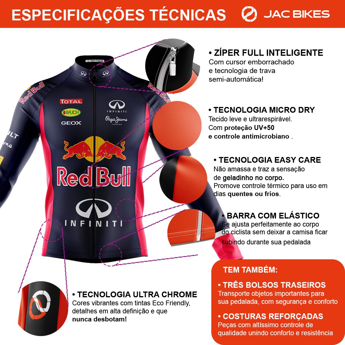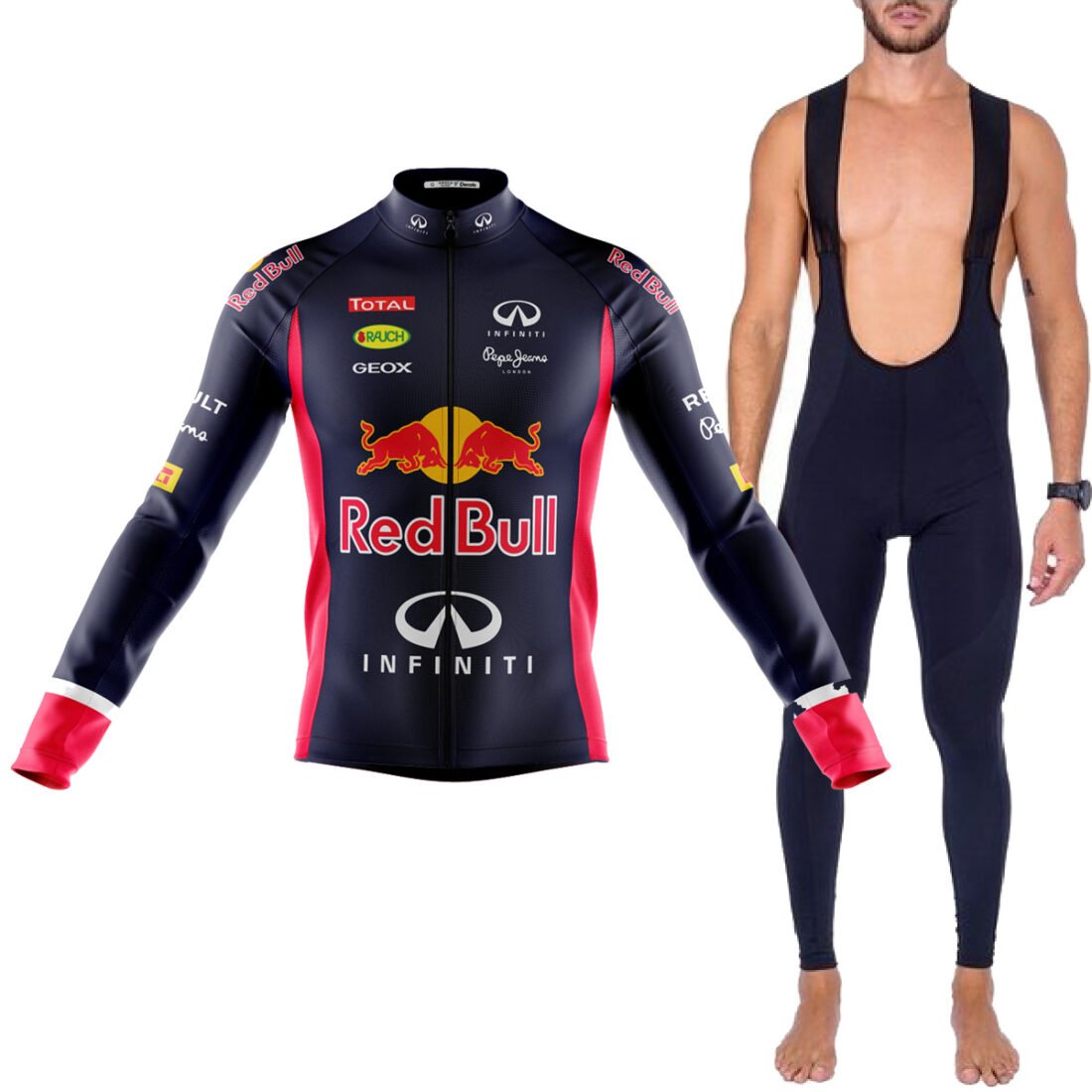 Kit Bretelle Camisa Red Bull Manga Longa Dryfit Ciclismo