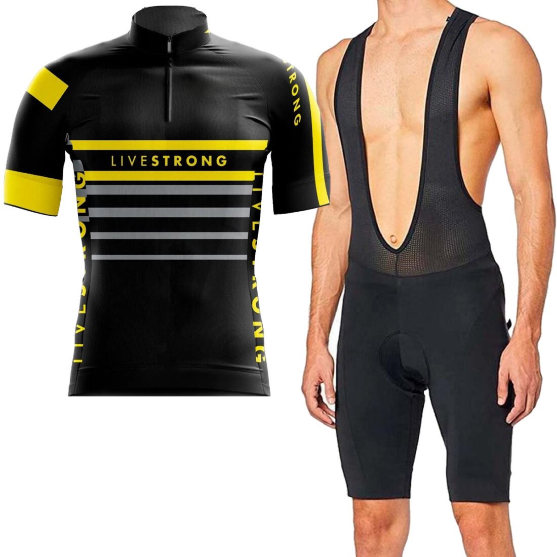 Kit Bretelle Curto Forro Gel Camisa Livestrong Listras Ciclismo Mtb Speed