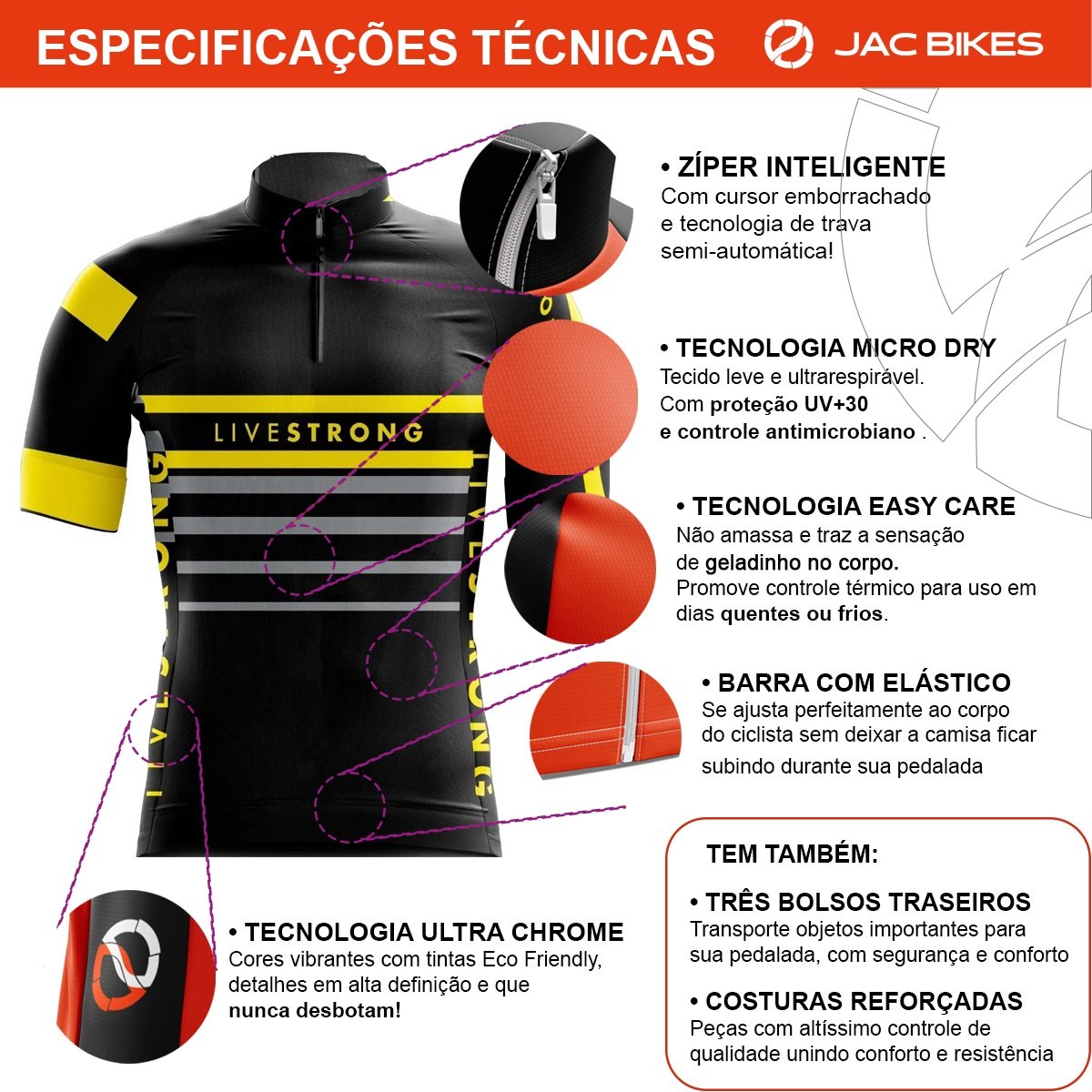 – Tecido Dry Fit, macio, geladinho, anti-umidade, anti-encolhimento e anti-suor