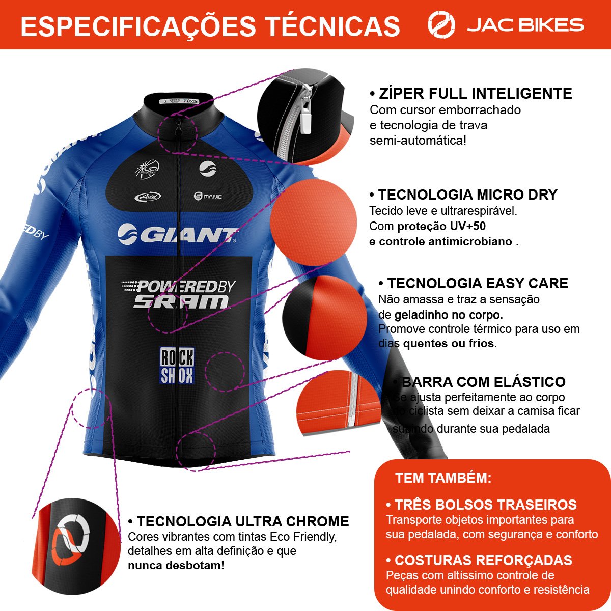 Kit Bretelle Gel Camisa Longa Ciclismo Giant Dryfit Bike Uv+