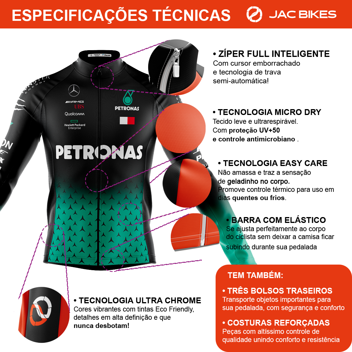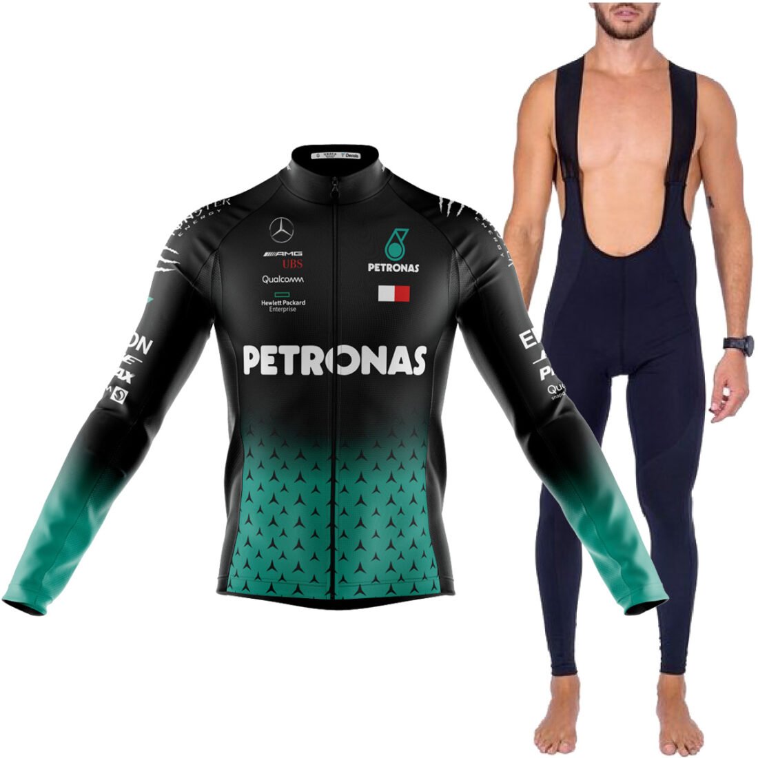 Kit Bretelle Gel Camisa Longa Ciclismo Petronas Dryfit Bike