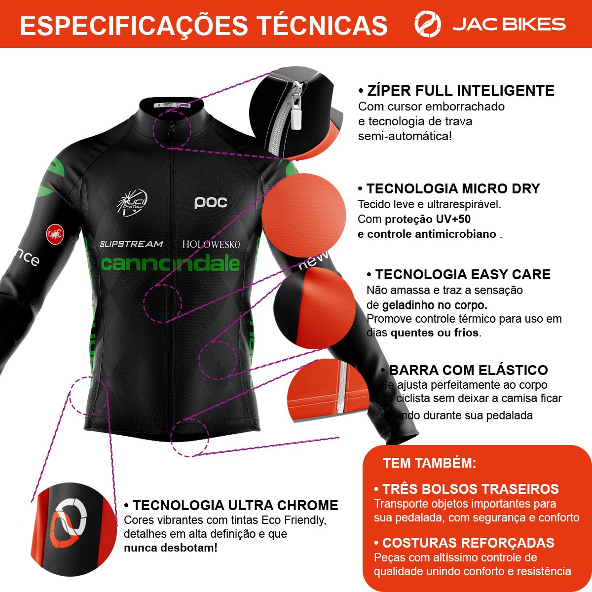 Kit Camisa Bike Cannondale Ciclismo Manga Longa e Calça Ciclismo Espuma Bolso Refletivo