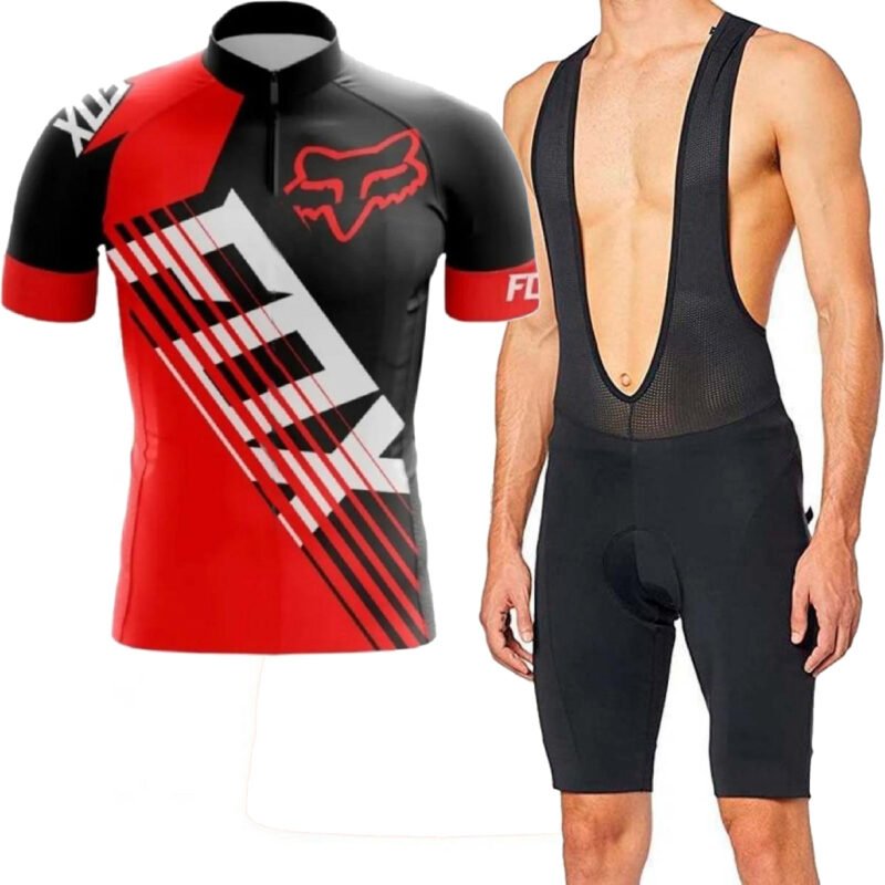 Kit Camisa Ciclismo Fox Longa Com Calça Bike Forro Espuma Bolso Uv