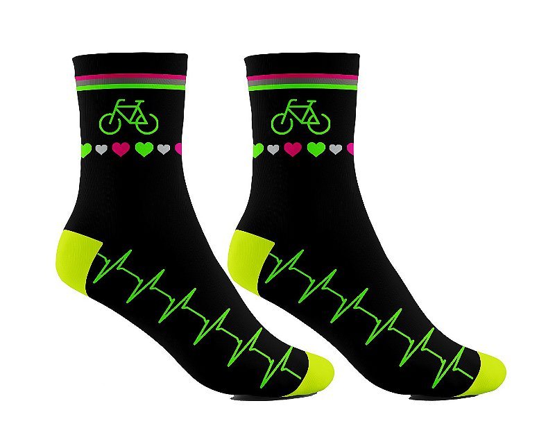 Meia Ciclismo Cano Longo Bike Batimento Coração