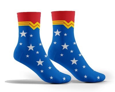 Meia Cano Alto Mulher Maravilha Algodao Ciclismo Esporte Mtb