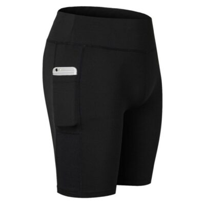 Bermuda Fitness Com Bolso Academia Dry Fit Cintura Alta Preta