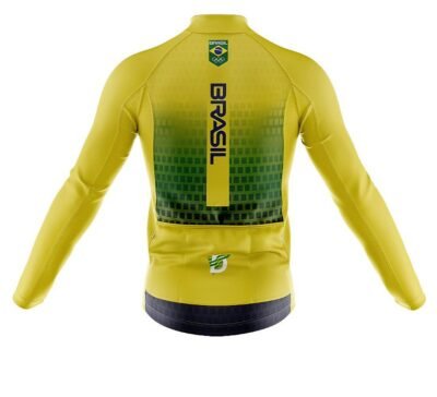 Conjunto Camisa Manga Longa Brasil Com Calça Ciclismo Espuma Refletivo