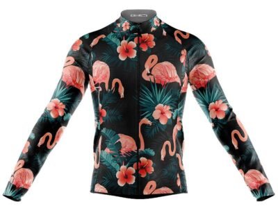 Camisa Ciclismo Floral Flamingo Preta Longa Full Ziper Bike